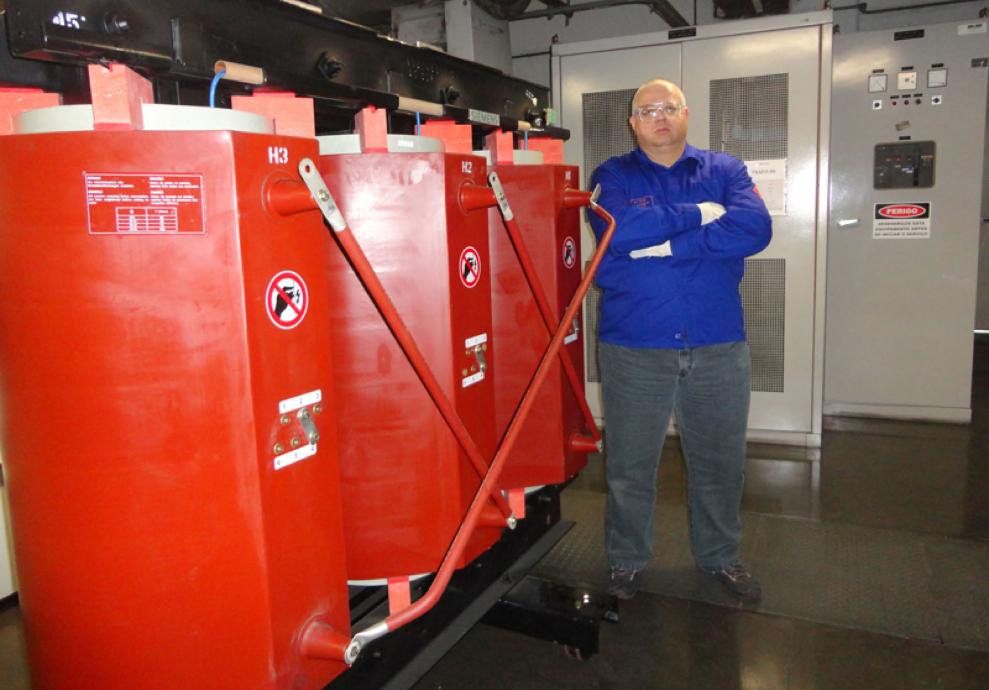 Equipe Mantest comissiona os novos transformadores do Shopping Market Place.