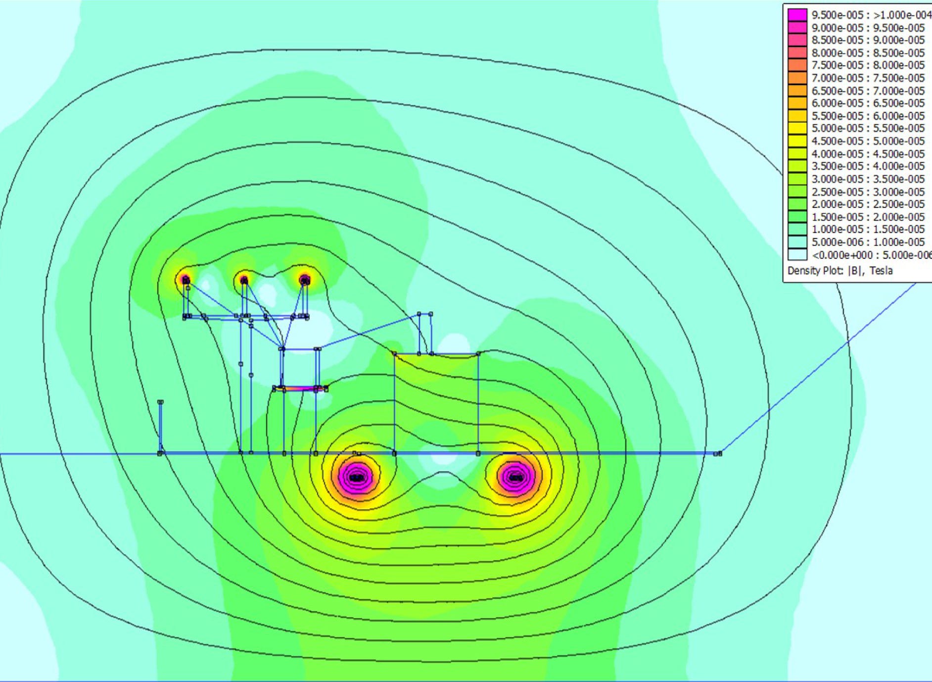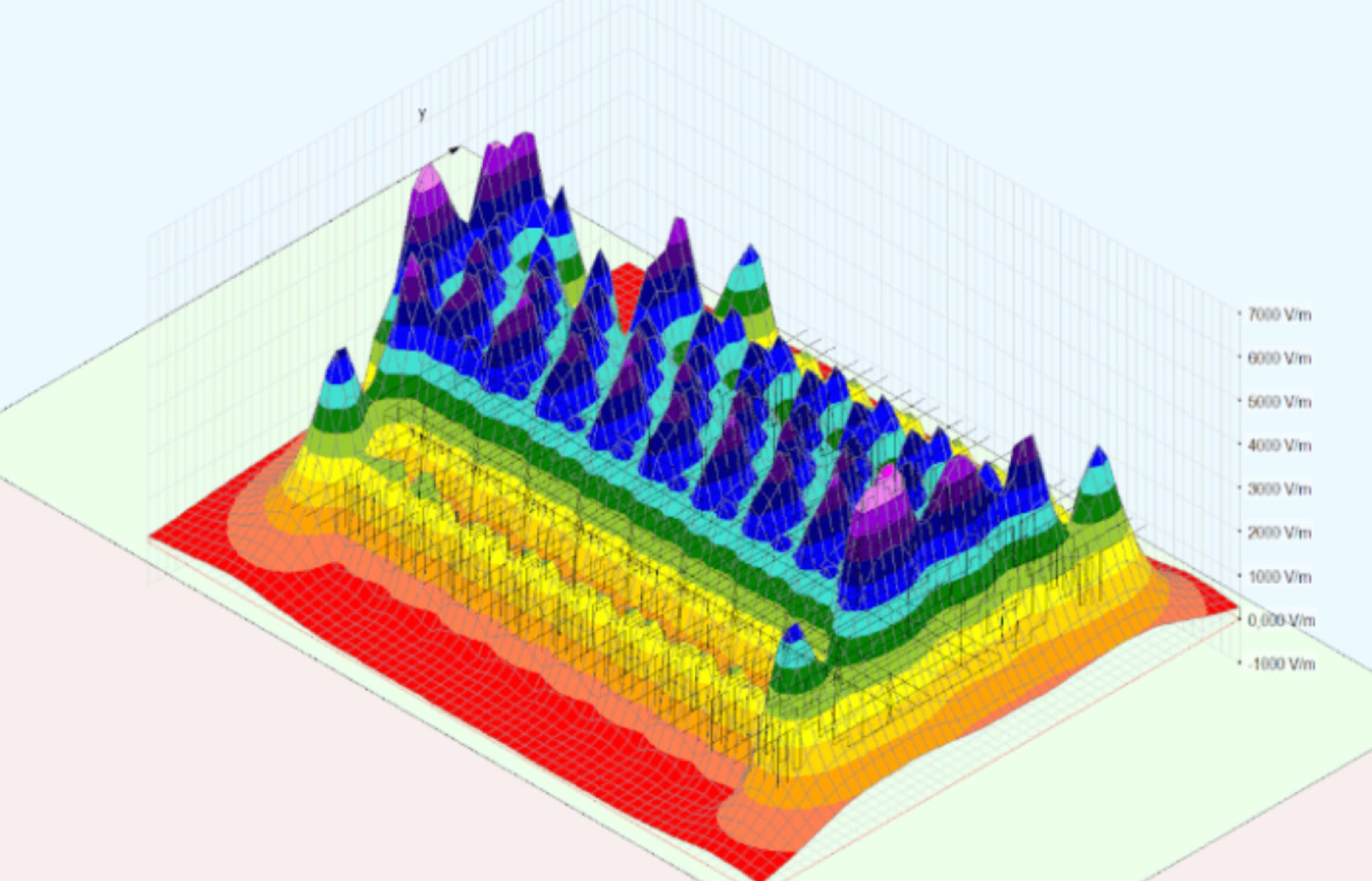 Gráfico de levantamento de campos elétricos e magnéticos admissíveis em ambientes ocupacionais.