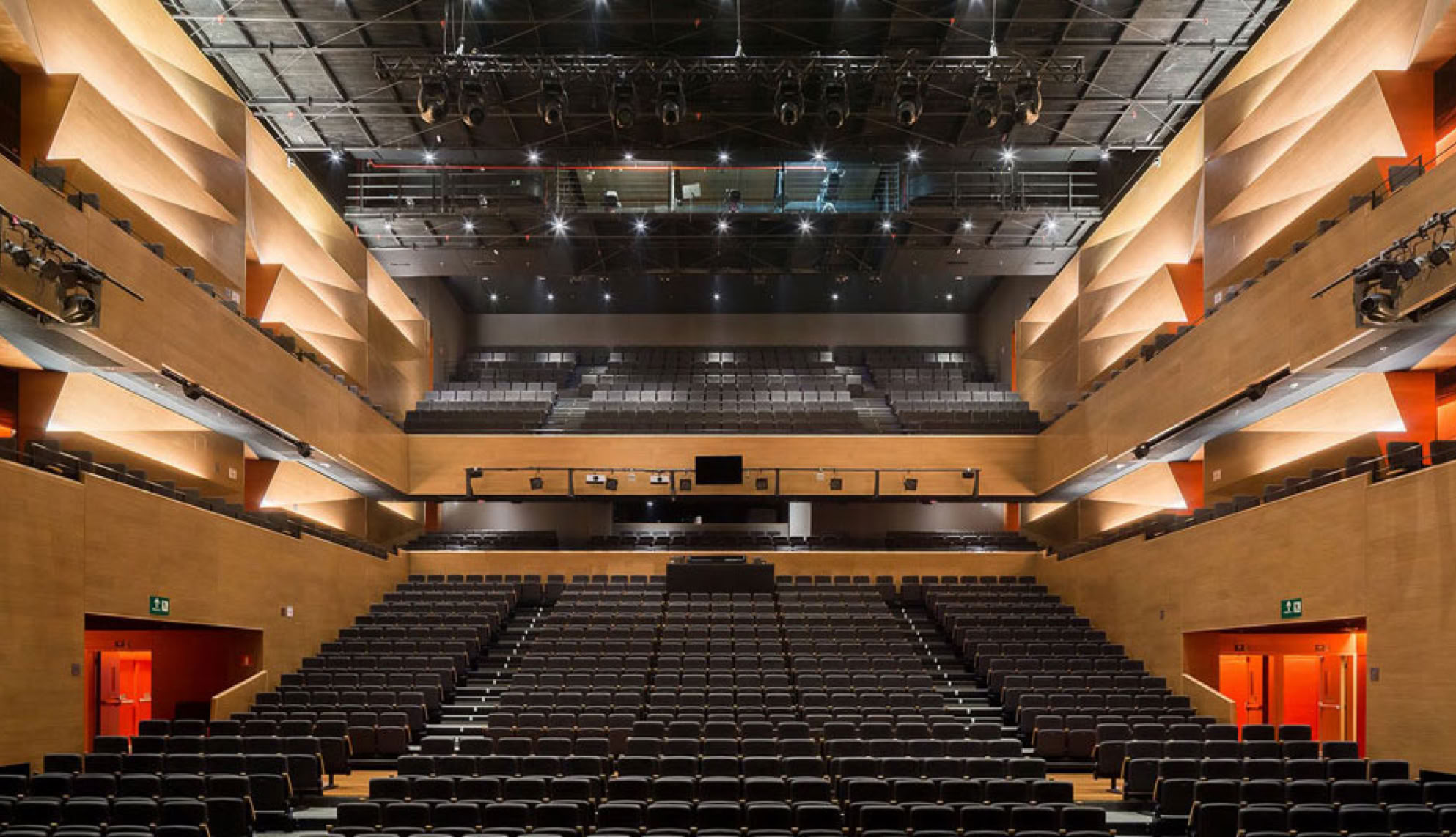 Energia para o avançado sistema de recolhimento automático das poltronas e de varas cênicas automatizadas, que permitem a mudança de configuração do espaço em questão de minutos.