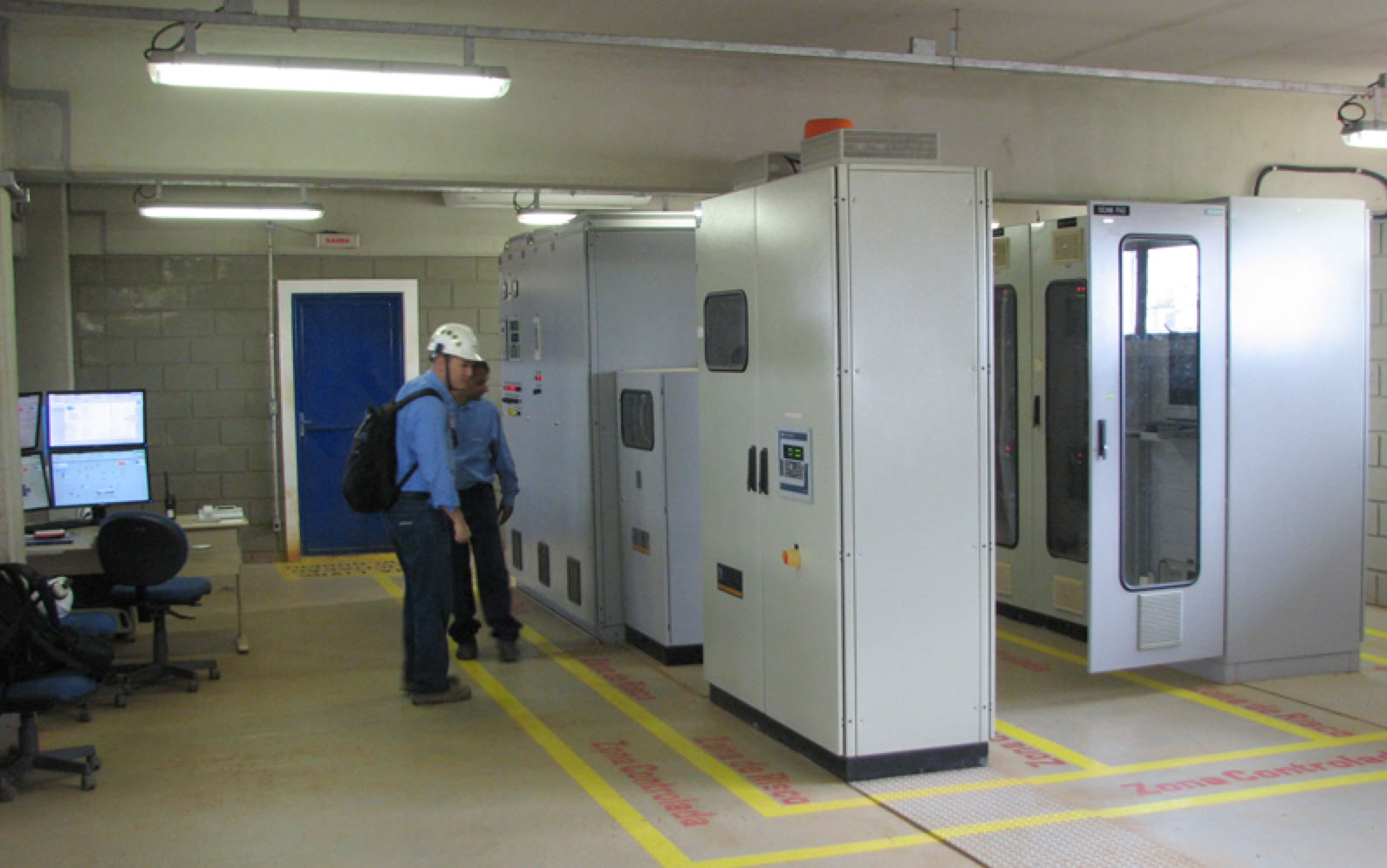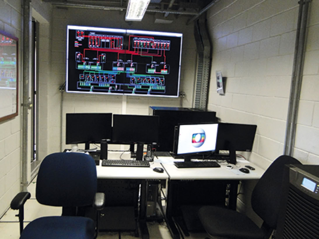 Fotos: Sala do Sistema de Supervisão e Controle, Video wall do Sistema de Supervisão e Controle, Painéis de média tensão, Cubículo de entrada da concessionária, Operador da Mantest no cubículo de entrada da concessionária.